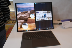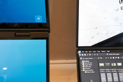 従来モデルと比べ、ヒンジ部分の構造を改善し、ディスプレイ間の隙間を削減。狭額縁化することで、特に2つの画面を1画面として使う際の体験を改善するとともに、フットプリントを以前より5%縮小した。筐体には独自の特殊合金であるセラルミナムを用いるなど、耐久性も確保している。