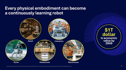 そこで注目されているのが、AIソフトウェアをローカルで実行できる強力な半導体だ。PCやスマートフォンに採用されているのと同じような半導体が、フィジカルAIで利用されるため、Qualcommなどの半導体ベンダーにとっては新しいビジネスチャンスだと捉えられているのだ。