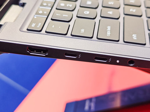 ポート構成は変更されており、旧モデルではThunderbolt 4 2基、USB 3.2 Gen 2 2基だったが、新モデルではThunderbolt 4 3基、USB 3.2 Gen 2と、USB Standard A端子が1つ減り代わりにThunderbolt 4が1つ増えた。