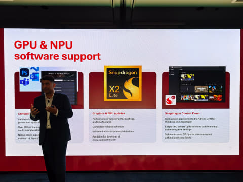 Qualcommは、1月5日にCESブースで記者会見を行ない、新発表した「Snapdragon X2 Plus」に関する説明を行なった。この中でQualcomm Technologies上級副社長兼PC事業部長ケダール・コンダップ氏は「Snapdragonの強みは性能とバッテリ駆動時間、NPUの性能という3つだが、Snapdragon X2シリーズではそれをさらに拡張する」と述べた。