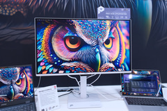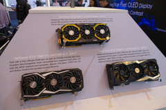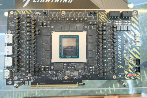 GeForce RTX 5090 32G LIGHTNING Z GPU部。基板などにもLIGHTNINGのデザインがあしらわれている 銅製のフルカバープレート。VRAMや電源フェーズなども覆う大型設計 GeForce RTX 5090 32G LIGHTNING Zを使ったPC 歴代のLIGHTNINGシリーズビデオカードも並ぶ そのほか、Core Ultraシリーズ3搭載のPC製品、RGBストライプ採用のQD-OLEDゲーミングモニターなど、多数の製品が展示されている。