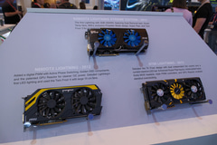 本製品の展示エリアには分解機に加え、歴代のLIGHTNINGシリーズビデオカードなども並べられている。