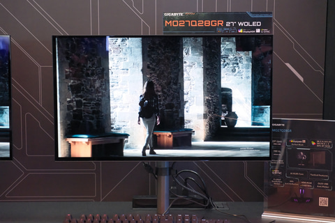 モニター製品では、タンデムOLEDパネルを採用した27型ゲーミングモニター「MO27Q28GR」などを展示。解像度はWQHD(2,560×1,440ドット)で、リフレッシュレートは最大280Hzとなっている。輝度をさらに引き上げるHyperNits機能にも対応している。また、V-StripeサブピクセルのQD-OLEDパネルを採用した「MO34WQC36」なども並べられていた。