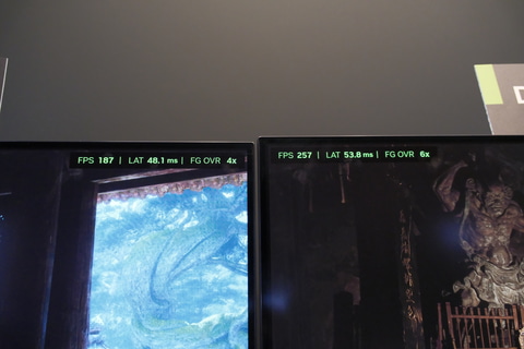 コンシューマ関連の機能では、G-SYNC PulsarやDLSS 4.5のデモが行なわれた。G-SYNC Pulsarは、可変リフレッシュレートや可変オーバードライブ技術などを組み合わせることで、画面内の物体が動いたときのモーションブラーを抑える技術。2024年の始めに発表自体はされていたが、約2年越しで対応モニターが投入されることとなった。