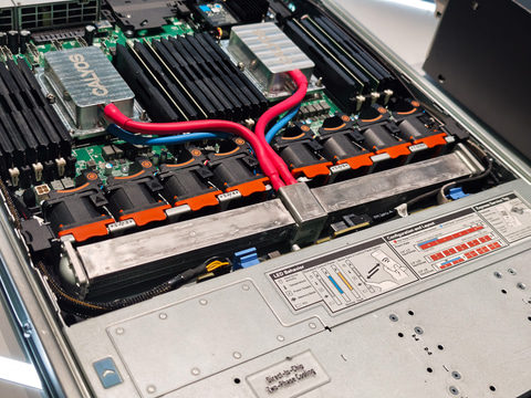 このBBUはラックの中に設置して、仮にデータセンター施設からの電源供給が途切れたとしても、瞬時に切り替わりラックの動作を継続できる。AIデータセンターでは、AIの学習処理などはバッチ処理されることになり、その結果が出るまで膨大な時間がかかる場合がある。それが電力供給が途切れると、演算途中でシステムが落ちてしまうことになり、それまでの演算結果がすべて無効になってしまう。