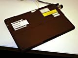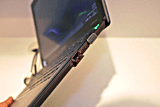 | ブラックとブラウンの2色が展示されていた | 裏面の半分近くをバッテリパックが占める |