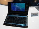 PC専業メーカーとして唯一ブースを構えていた工人舎では、コンバーチブルなUMPCでありながら、本体サイズが161×111×10~26mm(幅×奥行き×高さ)、重量が約400gのUMPC「PA」シリーズを展示。近日中に発表するとみられる。