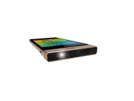 Smart CastはAndroidスマートフォンだが、上部に回転できるプロジェクタが付いており、下側を向けた時には、仮想タッチスクリーンとして利用できる。キーボードを表示させて、仮想キーボードとして利用できるほか、基調講演では中国の有名なピアニストであるランラン氏が登壇し、その機能を利用してピアノを弾くデモを行なった。なお、上に向けた時には普通のプロジェクタとしても利用できる。