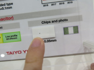 太陽誘電の無線モジュール。BluetoothのほかにWi-Fiも用意している ROHMのBluetoothモジュールや各種センサーが入ったデバイスの例 プロセッサ、圧力センサー、磁気センサー、加速度センサー、Bluetoothモジュールなどが、直径33mmのサイズに収まっている 村田製作所のセンサーキットの例。光による心拍計、気圧センサー、温度センサーを集約。特に気圧センサーの精度は高く、腕を上げた程度だけでも差異を検出する アルプス電気のBluetooth Smartモジュール。アンテナ付きで、4.7mm四方、高さ2mmとコンパクトにまとまっている ちなみに太陽誘電は6月に光記録メディア事業からの撤退を発表したのだが、既に同社の事業の主力は電子部品に移行している。しかし光記録メディアで培ったノウハウを駆使した部品が存在するのが特徴だ。