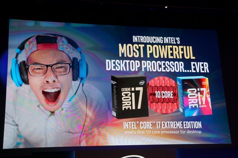 講演の中で、同社副社長兼クライアントコンピューティング事業本部事業本部長のナビン・シャノイ氏は、Broadwell-Eの開発コードネームで知られるCore i7-6950X Extreme Editionなどの4製品を紹介。