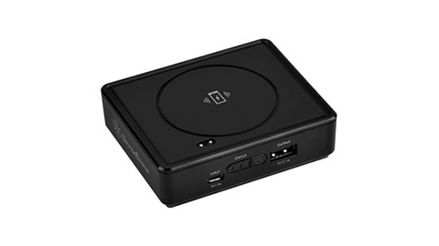 ワイヤレス充電規格の「Qi」に対応したモバイルバッテリで、2.1AのUSB出力も搭載。Qiと同時に充電することも可能。