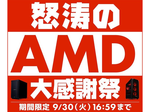 ユニットコムはパソコン工房Webサイトにて、Ryzen搭載PCを特価にて販売する「怒涛のAMD大感謝祭」を開催している。期間は9月30日16時59分まで。