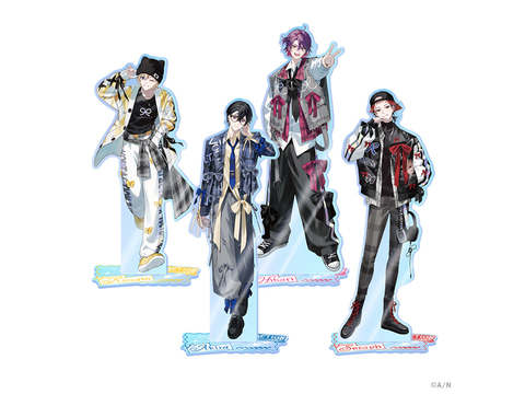 販売アイテムは、オーロラアクリルスタンド(各1,800円/全4種)、ランダムフォト風カード(1パック350円/全19種)、ランダム箔押し缶バッジ(1パック650円/全12種)、マスコットマルチリボンバンド(各2,200円/全4種)をラインナップする。