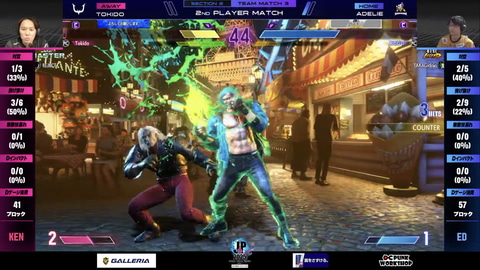 先鋒戦は、ひびきのリリーとふ~どのエドの1戦。ここはふ~どのエドがひびきのリリーを抑えて2-0で勝利し、REJECTが10-0で先制。続く中堅戦はあでりいのエドとときどのケンの1戦だが、あでりいの動きがよく、ときどのケン相手に2-0で完封勝利を決めて、広島TEAM iXAが10-10で追いつく展開となった。