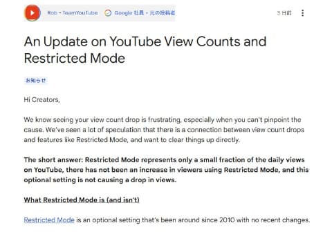 ユーザーの間では、「限定公開」にしていることと関連性があるのではないかという憶測がある。しかし、Googleによると、この設定はデフォルトでオフになっているほか、学校や図書館といった施設向けに設計されているもので、利用者数は少ない。かつ、18歳未満のアカウントに適用される年齢制限措置とはまったく異なるもので、AIで判定して自動的に限定公開にしたりはしておらず、このオプションは視聴回数に影響していないとの見方を明らかにした。