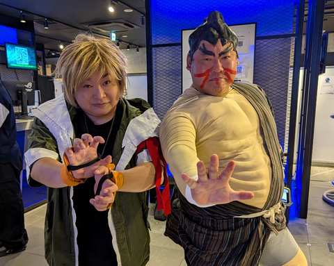 冒頭でも触れた通り、MATCH1の試合はオフラインの会場で行なわれた。試合開始前の会場には来場者たち向けのMCとしてNOモーション。の2人が登壇し、観戦の場を盛り上げるための前説を行なったり、スト6キャラクターのモノマネやトークなどで会場を盛り上げた。