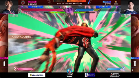 チームのオーダーについて聞くと、最初からザンギエフについてはエドが担当する、ということで自分がいくことになっていたので、先鋒でこばやんが出たことで自分が先鋒で出る運びとなったようだ。ぷげらのベガピックについては、配信などでサガットが目立っていて、最近ぷげらのベガが隠れていたので、隠し玉として出したという。cosaについては人対策がしっかりしたプレーヤーで、チームメンバーみんながいやがっていたので、ガチくんが出ることになっていたとした。