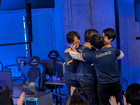 続いて、勝利した名古屋NTPOJAのメンバー全員からも話を聞くことができた。オフライン開催の感想について聞くと、リーダーのKEI.Bは、名古屋NTPOJAでは昨年も名古屋の施設でお客さんを入れてオフラインで試合したことはあるが、その時も試合に勝てたのでオフラインでの試合は相性がいいのかもしれないとうれしそうにコメントした。