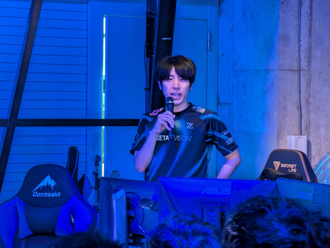 試合終了後は、両チームのメンバーたちから簡単に話を聞くことができた。オフラインの対決にて惜しくも敗れてしまったZETA DIVISION Geeklyのメンバーたちだが、オフライン環境での試合の感触について尋ねると、ひぐちは、チーム戦で負けられないという中で、個人戦とは違うプレッシャーを結構感じてしまったという。一方でそれはすごい楽しさもあるので、結果としては負けてしまったが、すごい心が上下するようなイベントになると感じられたので、次があればまたリベンジしたいとした。