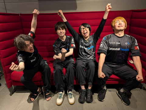 続いて、勝利したDetonatioN FocusMeのメンバー全員からも話を聞くことができた。オフライン開催の感想について聞くと、リーダーの板橋ザンギエフは観戦する人たちのレベルが高く、みんな試合中はわきまえるなど、ゲームのことも試合中の選手たちのこともすごく考えて応援してくれているのが本当にありがたいと観戦に来たファンたちに向けて感謝の言葉を発した。会場の雰囲気は実際に選手たちのプレイにも影響があるので、ファンたちのおかげでいいプレイができたし、みんなで盛り上がれたのがよかったとした。