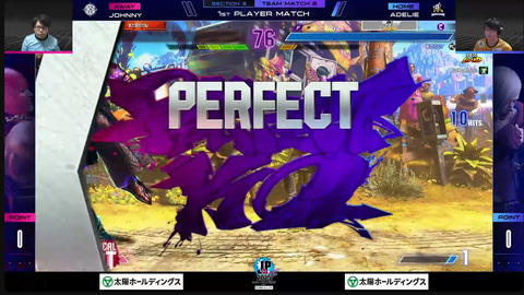 大将戦はももちのエドとGO1のキャミィの1戦。2セット終わって1-1のところで、GO1がキャラクターを春麗に変更して、激闘が再開。3セット目もももちのエドの勢いが止まらない状況で今度はDetonatioN FocusMeがインターバル。ここからGO1の春麗の動きがよくなり、フルセットフルラウンドまでもつれ込む激闘となったが、最後はギリギリでGO1が勝利を決めて見事に勝利!DetonatioN FocusMeが、ZETA DIVISION Geeklyを相手に40-0の完封勝利を決めた。