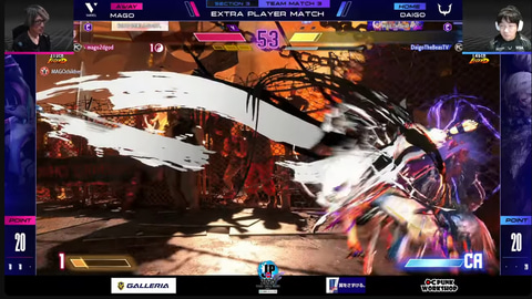 ここはキャラの有利に加えてLeSharの読みも冴えており、LeSharのテリーが3-0とYHC-餅のダルシム相手に圧勝の展開を見せて、大将戦を制した。この大将戦勝利により、REJECTが20-20でVARRELに追いつき、延長戦が発生する展開となった。