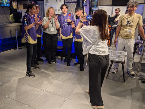 試合終了後は両チームから声を聞くことができた。MATCH 1で惜しくも敗れたVictrix FAV gamingのメンバーたちにオフラインでの試合の感触について尋ねると、リーダーのsakoは、久々のオフラインでのチーム戦ということで緊張していたと話した。また、お客さんの声援がすごく、自分は出ていなかったけど楽しかったとコメントした。また、試合の環境としてはオンラインに戻したことでラグもかなり減少していたが、お客さんが見ている配信とのズレについて指摘しており、その温度差が若干気になったとした。