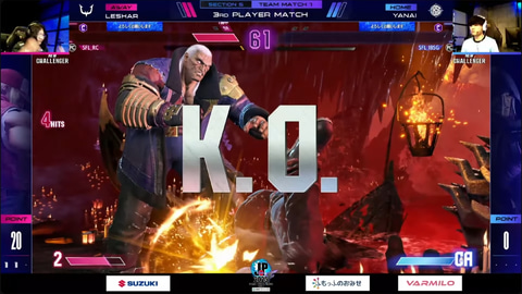 大将戦はヤナイのベガとLeSharのテリーの1戦。ヤナイのベガの動きがとにかく前向きで、攻めの姿勢がいい形でLeSharのテリーに刺さり、2-0の連勝と追い詰める。ここでREJECT側がインターバルを取るも、続く3セットもラウンド先行するのはヤナイのベガでマッチポイントまで追い込む。ところが、追い詰められたLeSharのテリーはここでギリギリの攻防を切り抜け、2-1で1セット取り返す粘りを見せる。