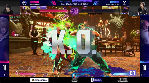 大将戦はYHC-餅のダルシムとナウマンの舞の1戦。1セットはYHC-餅のダルシムが好調で先制。ここでナウマンはキャラクターをケンに変更して挑むもYHC-餅が返り討ちに。
