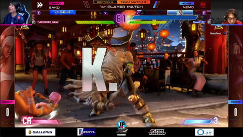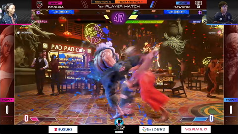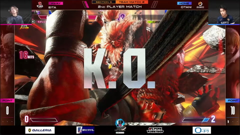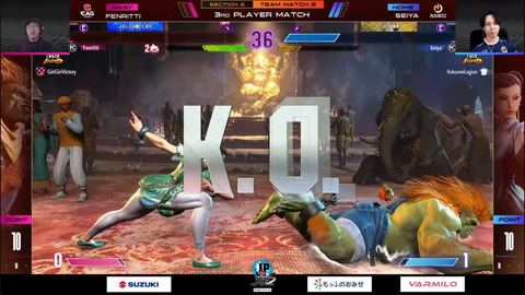 フェンりっちのブランカとSeiyaの春麗による大将戦は、Seiyaの動きが見事で、フェンりっちのブランカを制圧。途中1セット取られたが、最終的には3-1でSeiyaの春麗が勝利。チームとしては名古屋NTPOJAが30-10でCAG OSAKAに勝利した。