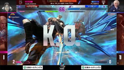 うりょのジェイミーとKEI.Bの舞の先鋒戦では、KEI.Bが先制するも、うりょも取り返す一進一退の攻防。そこから名古屋NTPOJA側がこのタイミングでインターバルを取る作戦に出る。一呼吸置いての最終3セット目は落ち着いたKEI.Bが勝利して先制の10ポイントを獲得した。続く中堅戦はえいたの豪鬼と大谷のケンの1戦だが、ここはえいたの動きが見事で2-0勝利でチームとしては10-10の同点という展開になった。