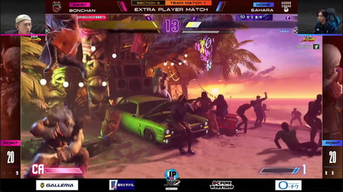 延長戦はボンちゃんの豪鬼とさはらのエドの1戦となり、ここはさはらが1セット先制すればボンちゃんが1セット取り返すギリギリの激闘。フルセットフルカウントの最終盤面、ギリギリの体力同士の攻防の中で、さはらのエドが強気の攻めに成功して勝利し、延長戦を制した。チームとしてはGood 8 Squadが30-20でCrazy Raccoonに勝利した。