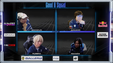 先鋒戦、どぐらのエレナとカワノの豪鬼の1戦で、ここはカワノが徹底したエレナ対策を見せ、2-0で先制。中堅戦はかずのこのキャミィとぷげらのサガットの1戦だが、ここはぷげらのサガットが立ち回りでキャミィを抑えてここも2-0で勝利。ここまでGood 8 Squadは全勝をキープ、20-0でリードする展開となった。