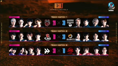 第6節を終えて、上位2チームの直接対決はGood 8 Squadに軍配が上がったが、Crazy Raccoon側も大将戦でShutoのリュウがガチくんに勝利しており、チームの底力が感じられる1戦だった。ポイント差も結果としては10ポイントのみのため、トップのGood 8 Squadもこの先の展開次第ではまだまだ油断大敵の状況と言えるだろう。