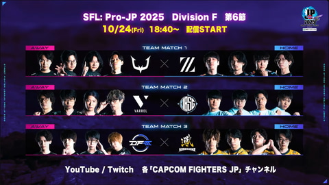 10月21日、「ストリートファイターリーグ: Pro-JP 2025(以下、SFL2025)」のS Division 第6節が行なわれた。いよいよ全10節の後半節がスタートとなる。