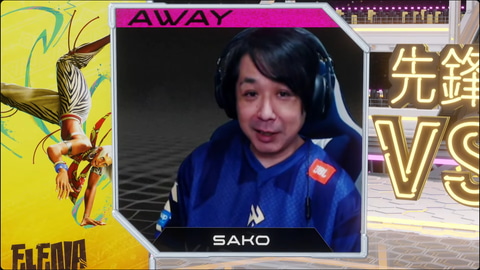 MATCH 3はホームがSaishunkan SOL 熊本、アウェイがVictrix FAV gamingの1戦。アウェイ側、Victrix FAV gamingのオーダーは、先鋒がsakoのエレナ、中堅がもけの春麗、大将がりゅうきちの舞、リザーブは藤村の舞。対するホーム側、Saishunkan SOL 熊本は先鋒がネモのベガ、中堅がまちゃぼーのリュウ、大将にはこばやんのザンギエフ、リザーブはcosaとなった。