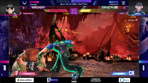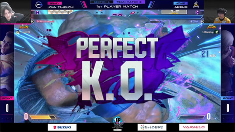 大将戦はあきらのキャミィとGO1の春麗の1戦。前半2セットはあきらのキャミィが冷静かつ攻めの姿勢でGO1の春麗を圧倒する展開。2-0の状況からDetonatioN FocusMeがインターバルを取り、続く3セット目はGO1が取り返すも次の4セットは再びあきらのキャミィが攻め切り、3-1で大将戦に勝利。