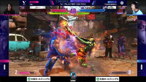 先鋒戦、鶏めしのダルシムとtsの豪鬼の1戦は一進一退の攻防が展開したが、フルセットフルカウントの最終戦後半、チャンスを掴んだ鶏めしのダルシムがコンボをミスしてしまい、その隙を突いたtsがリーサルを決めて2-1で先制。