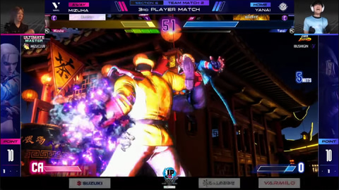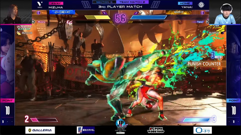 大将戦はヤナイのベガと水派の舞の1戦。1セット目はヤナイのベガの動きが良く先制。ここで水派はキャミィにキャラを変更して挑むも、試合全体の流れは変わらず、ラウンドを取られながらも要所でヤナイのベガが火力を見せて連勝で2-0とリードを広げる。ここでVARREL側はインターバルを挟む。そして迎えた3セット目、水派のキャミィの反撃が始まり、立て続けに2セットを取り返す。こうして迎えた最終5セットもギリギリの攻防の末、ヤナイのベガが踏ん張りを見せ、結果は3-2で勝利!