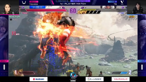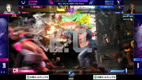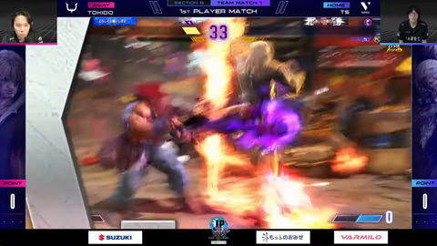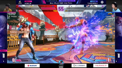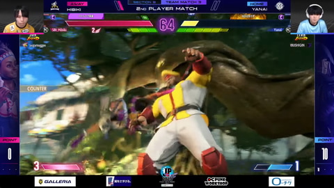 先鋒戦、tsの豪鬼とときどのケンの1戦は、ときどのケンがtsの豪鬼を抑えて2-0勝利で先制。続く中堅戦、マゴのジュリとLeSharのテリーの1戦では、1セット目はギリギリの攻防が展開される中、LeSharのテリーがしっかり抑えて先制。その勢いのまま2セット目も連勝し、2-0勝利でLeSharがマゴを撃破した。