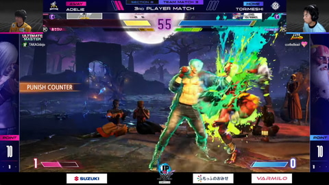 こうして迎えた大将戦は、鶏めしのダルシムとあでりいのエドの1戦。前半2セットはあでりいが圧巻の連勝で早くもリーチを掛けたが、ここから鶏めしの動きがよくなり、1セットを取り返す。続く4セット目も鶏めしの動きは好調だったが、あでりいがそれを上回り、ギリギリの立ち回りで勝利。あでりいが3-1で大将戦を勝利した。