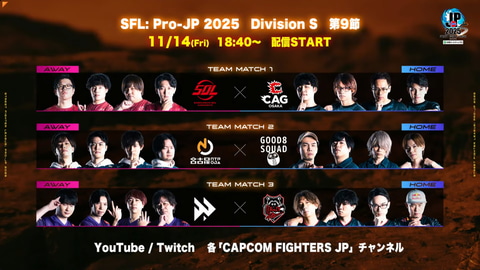 11月11日、「ストリートファイターリーグ: Pro-JP 2025(以下、SFL 2025)」のDivision F第8節が行なわれた。7日のDivision Sに続き、Division Fについても熾烈なトップ争いを展開するREJECTと広島TEAM iXA、そして残るプレイオフの最後の1枠を争う3位以下の激闘が注目のポイントとなっている。