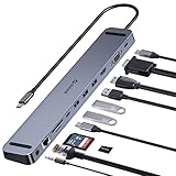 11-in-1 USB Type C Dockは、ノートPCのスタンドとしても使えるUSB Type-C接続のドッキングステーションだ。別途USB PD充電器を用意することで、最大100WのUSB PD給電が行なえる。インターフェイスは、USB 3.0 Type-C、USB Type-C(給電のみ)、USB 3.0 Type-A×3、HDMI、1Gbps LANなどを備える。
