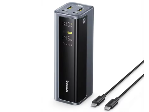 BaseusのEnerGeek GR12は、20,800mAhの大容量モバイルバッテリで、USB PDで最大145Wもの大出力を行なえることや、給電/充電/残量の状態などが分かるディスプレイを備えているのが特徴。