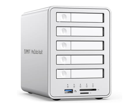 8858RC3は5つの2.5インチSSD/HDDを搭載し、RAID構成も設定可能なUSB 3.2 Gen 2対応ケース。2.5インチ専用とすることで101×167×140.5mmと比較的小型な筐体を実現している。8TBのSSDまたはHDDを利用すれば40TBのストレージが構築可能。