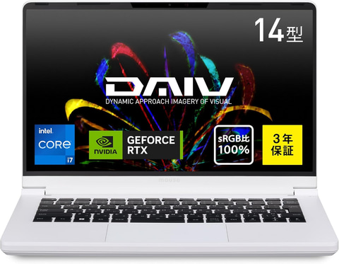DAIV R4I7G50WT3SJW103AZは写真や動画の編集、3Dモデリングなどに適した14型ノートPC。OSにWindows 11 Home、CPUにCore i7-13620H、GPUにGeForce RTX 4050 Laptop GPU、メモリにDDR5 32GB、ストレージにSSD 1TBを搭載。