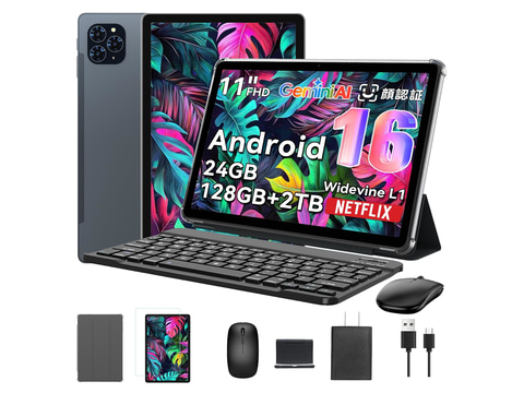 T90は、ディスプレイに11型液晶(1,920×1,200ドット)、SoCにUnisoc T615、メモリに8GB、ストレージに128GB、OSにAndroid 16を搭載するタブレット。AF付き1,300万画素リアカメラ、および500万画素フロントカメラを備え、顔認証機能に対応する。また、メモリは最大24GBまで仮想的に拡張可能だ。キーボードやマウス、タッチペン、保護ケースなどが付属する。