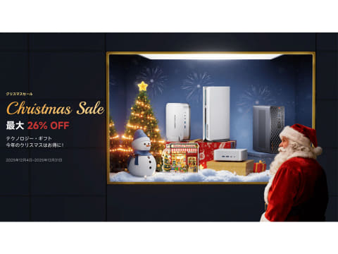 MINISFORUMは、RyzenシリーズやCore Ultraシリーズを搭載した高性能ミニPCを対象とした「クリスマスセール2025」を12月31日まで開催している。最大4万円の値引きとなる。