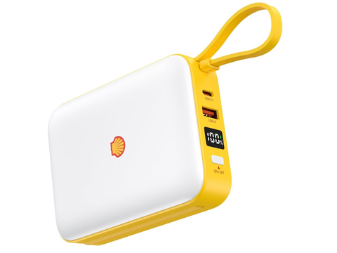 Shell小型モバイルバッテリはガソリンなどでお馴染みのShellが公式に販売しているモバイルバッテリ。容量は20,000mAhで、ストラップにもなるLightningケーブルのほか、USB Type-Cケーブルも内蔵し、本体に備えるUSB Type-CとType-A端子を合わせて最大4台の同時充電が行なえる。最大出力は22.5Wで、バッテリ残量などが数値で表示されるディスプレイも備える。容量10,000mAhのモデルもタイムセールで、900円引きとなる2,080円で販売されている。
