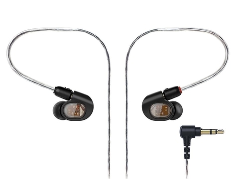 オーディオテクニカ「ATH-E70」はプロが音楽制作現場などで使用する用途で開発された有線のモニターイヤフォン。モニタリング用に最適化された低中高3基のバランスド・アーマチュアドライバを搭載し、全音域を正確に再現しているという。コード長は1.6mで、ハウジング部から着脱が可能な作り。付属品には6.3mmプラグ変換アダプタや専用ケース、サイズの異なる4種類のシリコンイヤーピースに加えて、粘弾性のあるポリウレタンを採用した柔らかいコンプライフォームによるイヤーピースも付属する。